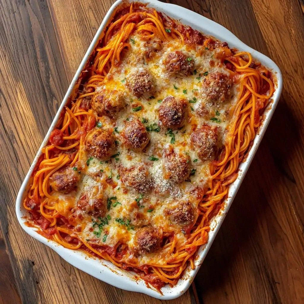 First, the aroma hits you like a warm hug: fresh basil, garlic sizzling in olive oil, and the comforting scent of tomato sauce bubbling. The sight is a glorious mosaic of golden meatballs nestled in a sea of al dente spaghetti, topped with a blanket of bubbling mozzarella that shimmers under the oven light. When you lift the lid, steam rises in ribbons, carrying whispers of Parmesan and Italian seasoning. The sound is the satisfying crackle of the crusty edges that shatter like thin ice when you press them. The texture? Chewy pasta, tender meat, and a cheese layer that stretches like a velvety ribbon, each bite a symphony of flavors.