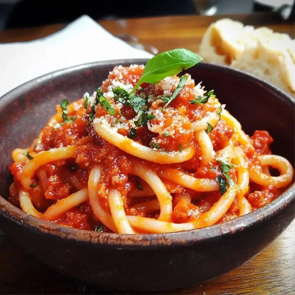 Picture this: the first bite and you’re hit by a glossy, tomato‑red sauce that clings to the thick, ridged bucatini like a velvet blanket, the sharp, smoky bite of guanciale dancing on your tongue, and a subtle heat from chili flakes that lingers without burning. The aroma is a complex medley of roasted pork, sun‑ripened tomatoes, and a whisper of garlic that wafts through the kitchen. The texture is a satisfying contrast between the chewy pasta and the crisp, caramelized edges of the cured meat. Every element works together in a symphony of flavor that feels both rustic and sophisticated.