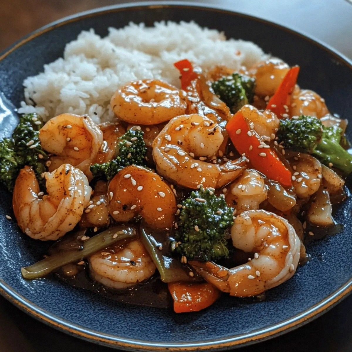 - Serve immediately, garnished with extra green onions or sesame seeds if desired. The dish looks vibrant and the sauce glistens like a polished trophy. Take a bite—notice the shrimp’s juicy tenderness, the vegetables’ crisp bite, and the sauce’s sweet‑savory finish. That sizzle when it hits the pan? Absolute perfection.