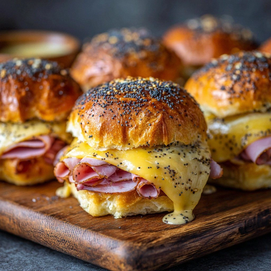 I’m not just talking about a sandwich. I’m talking about a handheld, bite‑sized experience that combines the comforting familiarity of a ham sandwich with the playful texture of a slider. The bread is buttery and slightly sweet, the ham is smoky and savory, the cheese melts into a gooey ribbon, and the mustard‑butter glaze coats everything in a glossy, tangy sheen. It’s a symphony of textures: crisp edges that crackle like thin ice, a soft interior that yields to your bite, and a glaze that sticks to your fingers, making every mouthful a little adventure. The aroma that fills the kitchen as the sliders bake is a heady mix of butter, garlic, and the faint scent of cured meat—an invitation you can’t ignore.