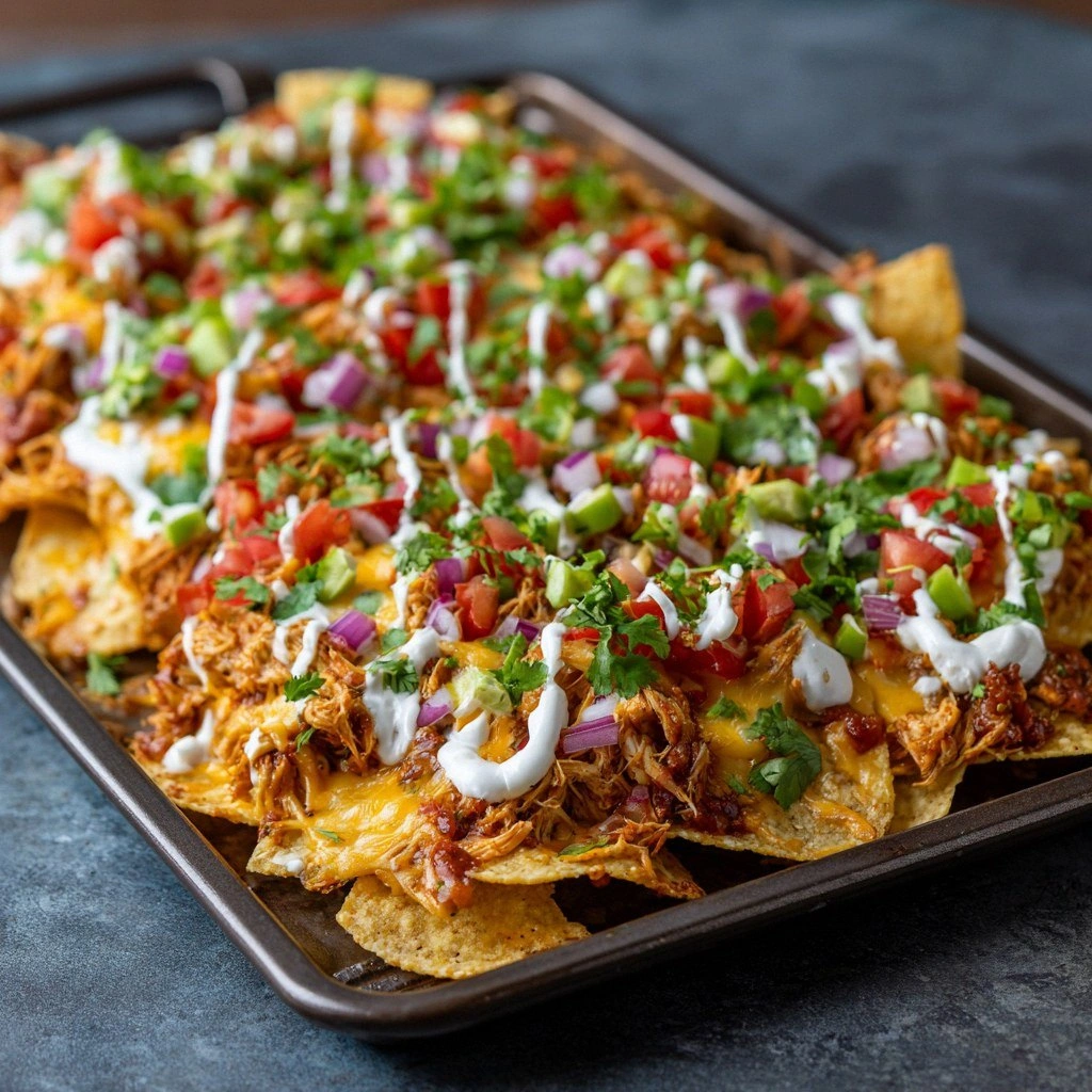 Swap the chicken for diced shrimp tossed in garlic, lime zest, and a pinch of cayenne. The shrimp cooks quickly, so bake for just 12 minutes, then add the cheese and finish the rest of the bake. The result is a fresh, ocean‑inspired nacho that’s perfect for summer gatherings.